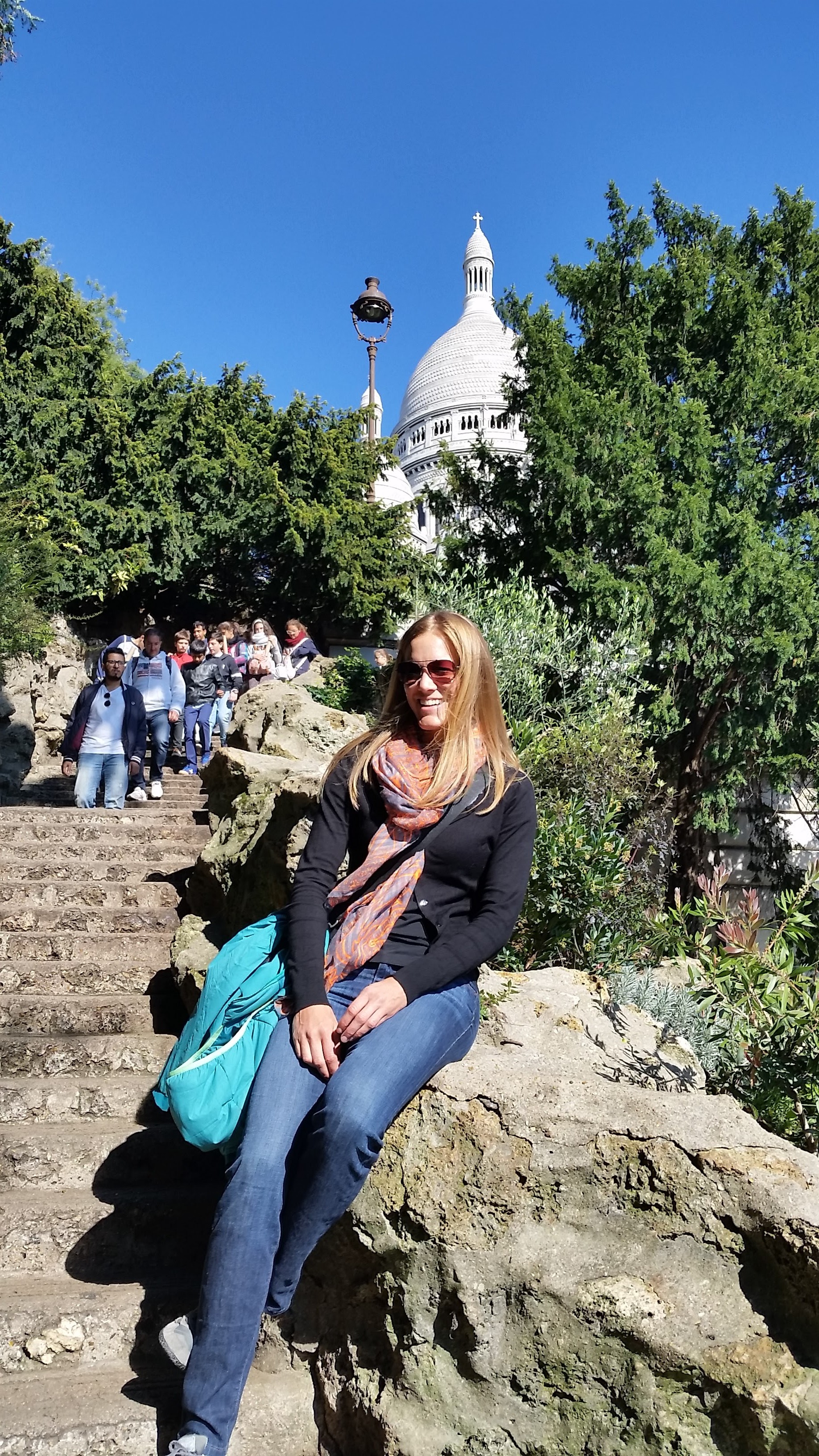 I took a train through the Chunnel from London to Paris. I thought it would be cool to travel through the Chunnel since I had studied a bit about it in school as an engineer. To be honest, I didn’t even know we had traveled through it until we were already on the other side. Maybe that’s the best way. I arrived to Paris a few hours late because someone had stolen the wires from a part of the train route originally planned, and we had to take a long detour. I arrived to my AirBnB after dark and met Eli, Miguel, Anna, and their little dog, Bab. Eli, saying it was too dark and I didn’t know the city, invited me to have dinner with their family, and I greatly enjoyed eating home-cooked food and learning about their family. What an incredible treat to have met this sweet family. I arrived to Paris with no plans except a bike tour of the city the next day. Since biking is one of my favorite things, I try to do bike tours in new cities to learn the area, see a few sites, and get an idea of what I want to do while I’m there. Luckily, I met Steph, a fellow solo traveller from New Zealand, on the tour, and we planned together to do and see all the touristy things of Paris. Not having great cell service, we decided to meet that evening under the middle of the Eiffel Tower at 6pm (I know, I know, but seriously, it’s pretty easy to find). Before meeting Steph, I wandered over to Musee d’Orsey to take in a few 19th/20th French/European paintings for a couple of hours and then made my way to the tower. We found a place to have dinner and share a bottle of wine and then decided to go to the top of the Eiffel Tower for a night view of the city, the twinkling tower, and the two-day-old blood moon. I think we waited in line less than 30 minutes and got to enjoy the view in what seemed record time compared to what others had told me about their adventures to the top. Afterward, we met for a drink with a friend of Steph’s from her designer frame convention (that’s why she was in town – she owns her own designer frame shop in New Zealand) at a quirky little restaurant that had three stories and a view to the bottom floor through the middle. We parted ways and decided to visit the Sacre Coeur the next day.