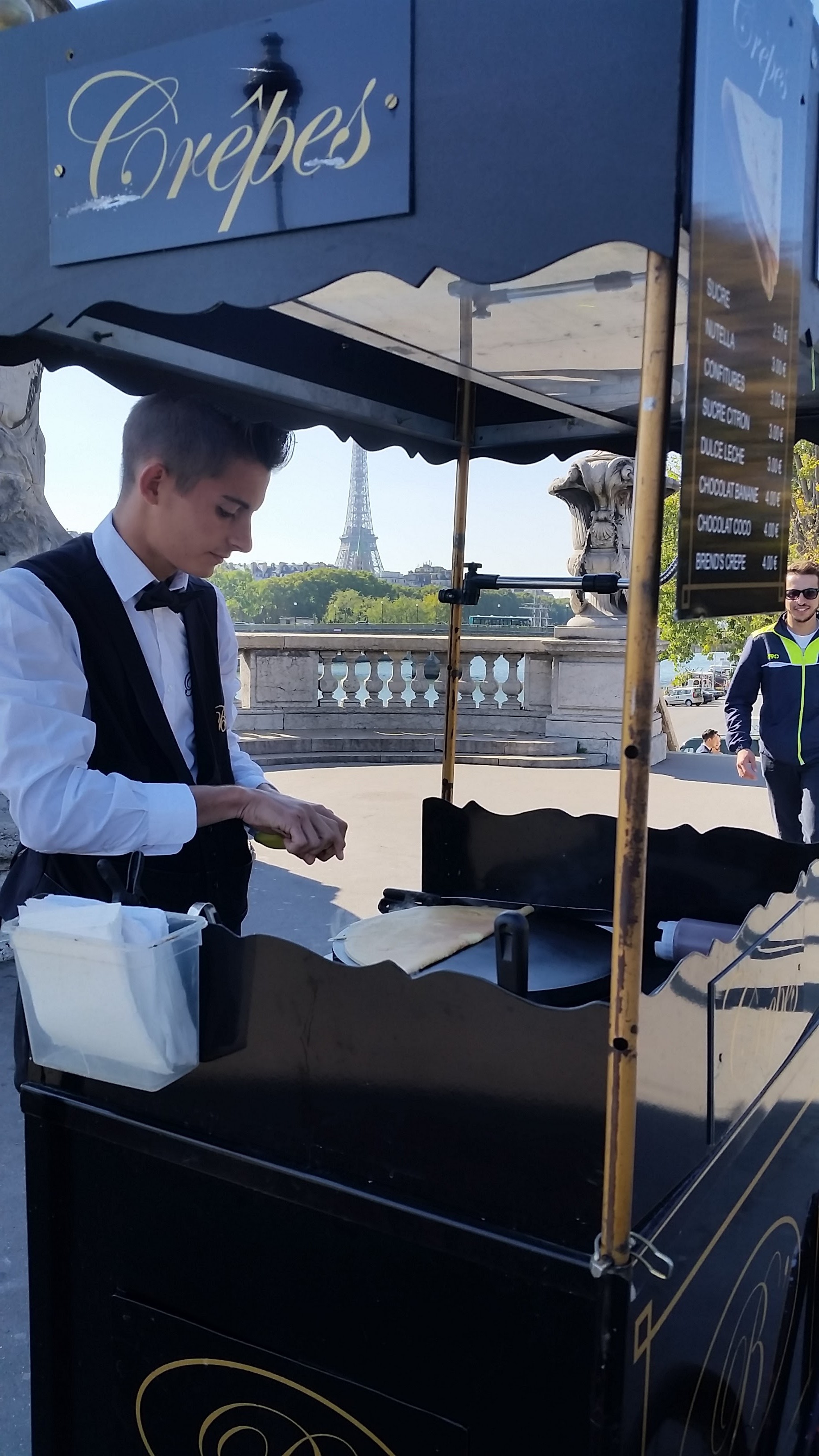 After the show, we walked back to a square that we had found on our way to get lunch. Covent Square had a few restaurants with balconies, and we decided to have a pint and watch the street performers. After watching Master Yogi Laser walk on his hands with his legs over his arms and do crazy balancing acts on stilts in the air (in all my yoga-ness, I can do neither of these things), we decided to explore the large indoor/outdoor market area connected to the pub. Decorations and sheep adorned everything. It was a special occasion for Shaun the Sheep (and raising money for the children’s hospital) and though we didn’t know the full meaning, we decided to take a few photo ops. We also stopped to have crepes in a little shop in the market, meandered some more, and then went to a traditional pub for dinner. I guess Jody was feeling more adventurous after being “recentered” by the burritos of Chipotle. We ate our last meal at the White Swan, where I enjoyed another meat pie, and then went back to the hotel. I met Jody for breakfast in the morning, and then said goodbye to my friend as he left to catch his flight home to the States. I stayed in very expensive London an extra day to catch up, plan and rest, but decided to catch a train to Paris the next day. At least Paris would be a little cheaper than London…(a little).