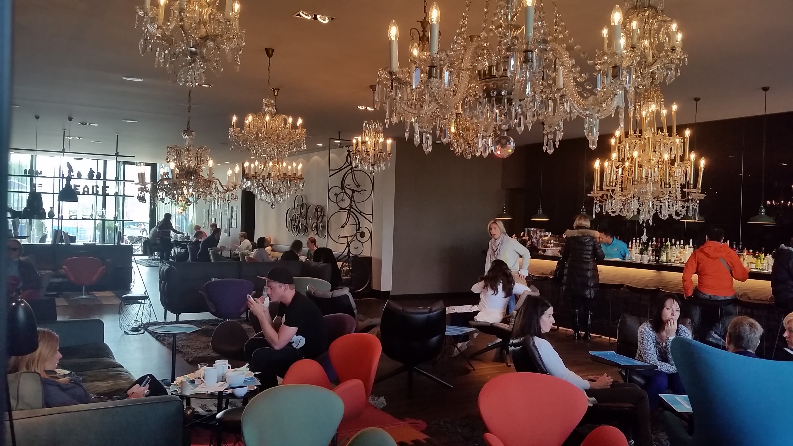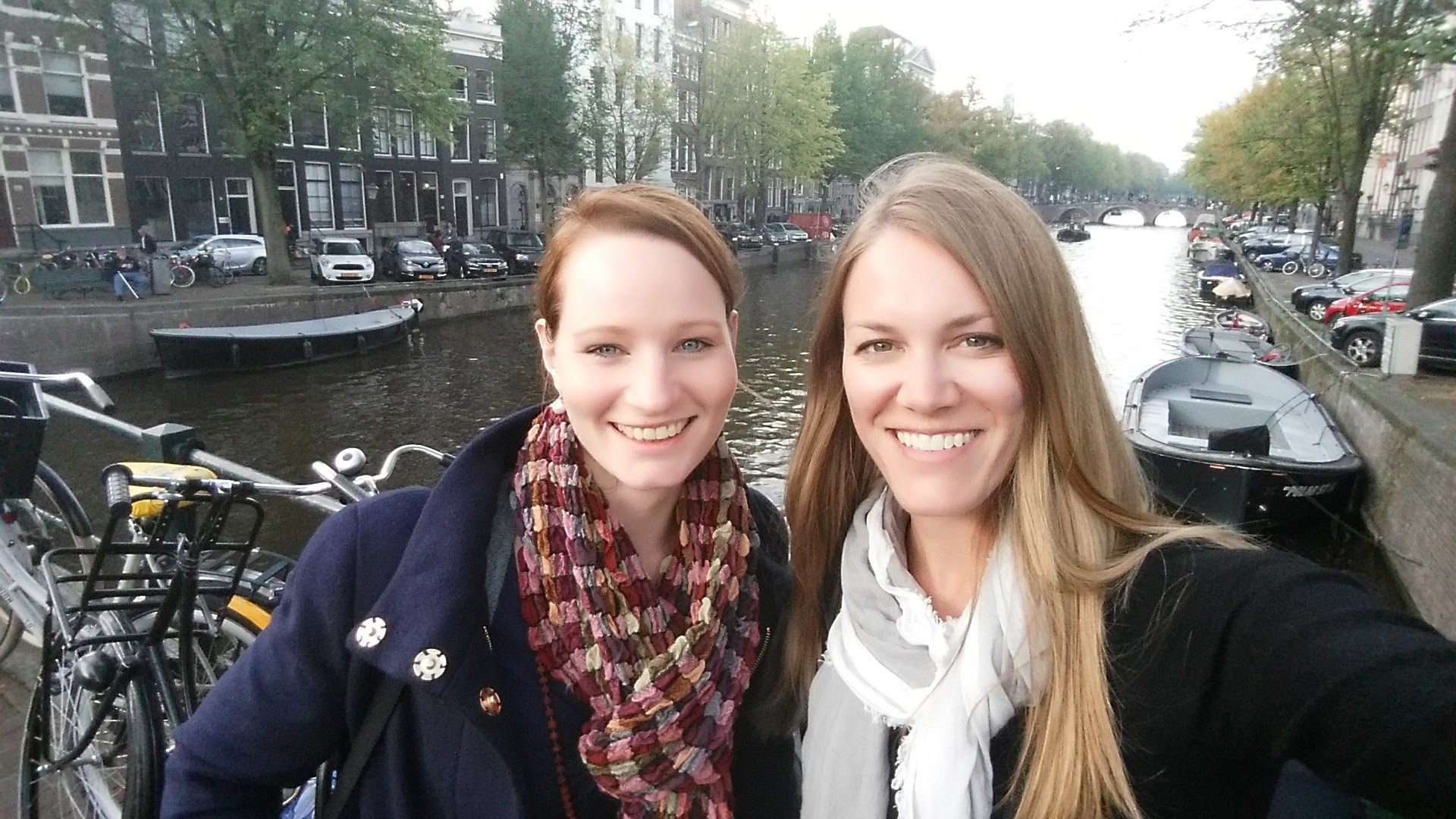 I took the train to Amsterdam from Paris. My bags were much smaller as I packed only for the weekend and left the rest of my stuff at Eli’s house. I decided to return to Paris after my weekend trip and stay with her and her family again because they were such great hosts. So, I landed at Hotel One to wait for Frieda to arrive from Germany. It was a great hotel if you’re looking for a place to stay in Europe. I watched the sunset from our corner room and then heard a knock at the door. It was so good to see my friend from yoga teacher training in Nicaragua last January! Because it was late, we decided immediately that we needed to get food. I had made reservations at a Dutch restaurant for 9pm. We started the walk and en route found a cute little Thai place to eat instead. Everything about this place was so unique and the details were absolutely amazing, down to the flower tea cups on leaf tea plates that matched all of our dishes and the friendliest, kindest waiter that spoke only a little English. It was called Chutima’s – it receives mediocre reviews for service, but we were in no hurry – we found it delightful. So we sat and chatted over dinner for a couple of hours and afterward walked back to the hotel and slept. We were both exhausted. On Saturday morning we took our time getting around, chatted about life, and found a great little cafe, De Bakkerswinkel, that served bruch. So, we started with a light breakfast of scones, clotted cream, and jam, and then moved right into lunch with soup and a sandwich. We also bought treats for our separate trips home that evening. Then we meandered the beautiful city. The city is clean and manicured and beautiful with the circling canals and bakeries and bicycles on every corner. We were a little disappointed that we indulged so much for brunch and didn’t leave room for all the amazing food we found as we walked. We went to a local grocery store because I talked so much about curry ketchup, and Frieda helped me find a tube of the yummy red sauce and a few other fun treats to take with me. Then we walked to a park and found a cute little restaurant in the middle where we drank mint tea on the second floor overlooking everything green and talked about our lives and maybe meeting up in Spain next year for a yoga retreat. As the sun lowered, we found our way back to the hotel, and had one last gin moscow mule together. Then our short reunion ended and our trains went separate ways.