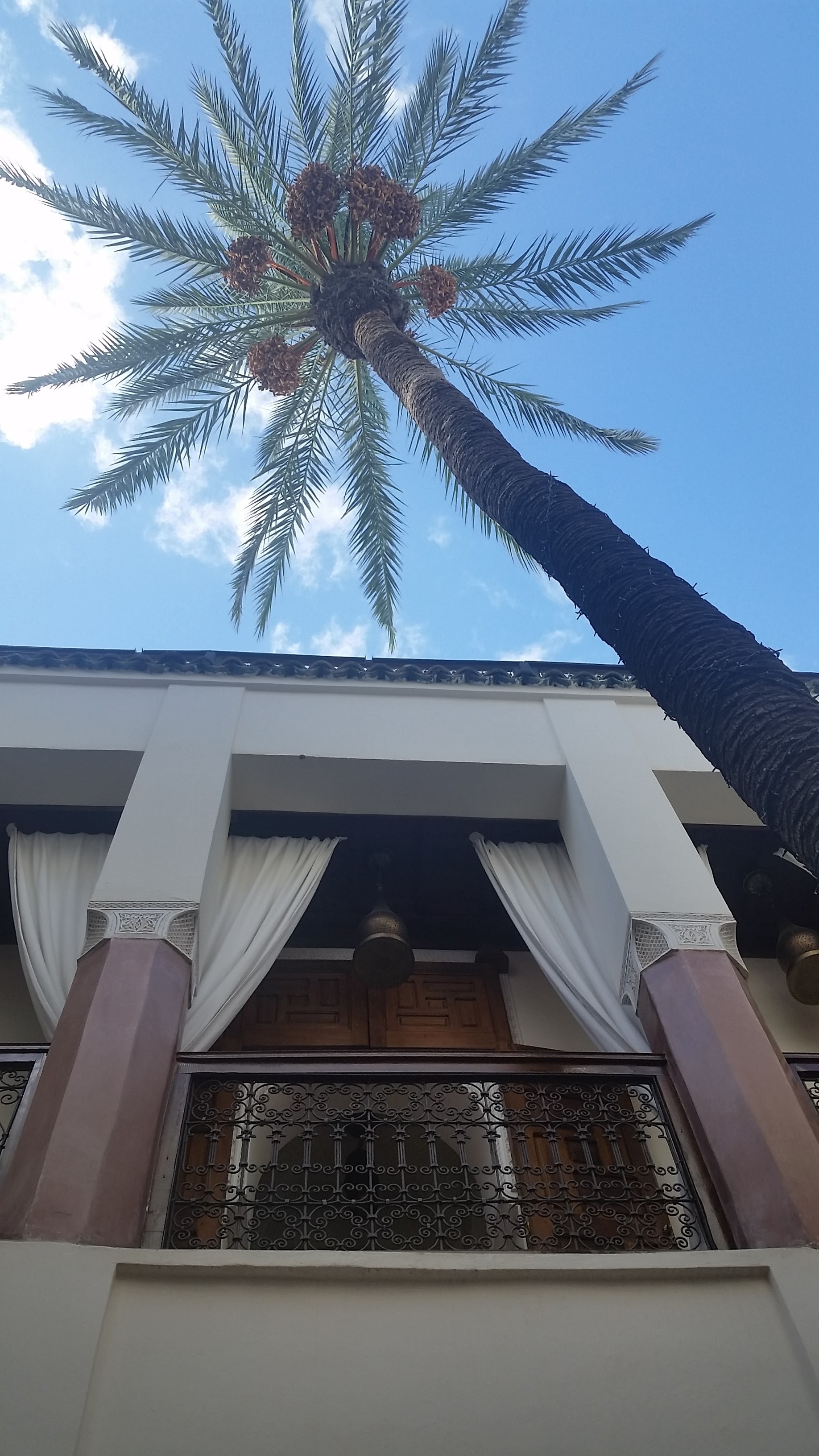 I flew from Paris to Marrakesh constantly on the look-out for a cute brunette with a yoga mat named Ashley. I didn’t find her until we landed, and I overheard another girl ask if she was going to a yoga retreat. I promptly asked them both about the yoga retreat and came to meet Ashley (a flight attendant from Seattle) and Faiza (a lawyer from New York City). We found our driver holding a sign reading Alma Retreats (the retreat company owned and operated by my friend Stacey), got in the SUV, and watched in horror, excitement, and awe as we darted through the tiny streets of Marrakesh barely missing people, bikes, wagons, donkeys, and small children. The car stopped, and we were instructed to get out and grab our bags. The driver then led us through a maze of narrow streets filled again with people, carts, motor bikes, bikes, and donkeys. Thirty-foot, adobe-like walls surrounded us on either side making it difficult to tell what direction we were going. We turned right and walked toward a children’s school. We turned right again and saw a dead end with a door, no sign. We rang the bell, the door opened, and we stepped through the opening into the beautiful oasis of Zam Zam Riad, our home for a couple of nights. A beautiful plunge pool greeted us and then opened to a small courtyard flooded by sunlight filtered by a palm tree taller than the building itself. The outside walls, all white, had large cutouts revealing the hallways and doors that led to all the rooms and extended three stories above us on all four sides. I marveled at the details of this place: the brass cut-out light fixtures that cast beautiful shapes on the walls and ceilings, the tassels at every corner and turn in every color, the delicate embroidery detail on the pillows and window treatments. It was unlike anything I had seen before, and I knew Morocco was going to be a memorable experience.