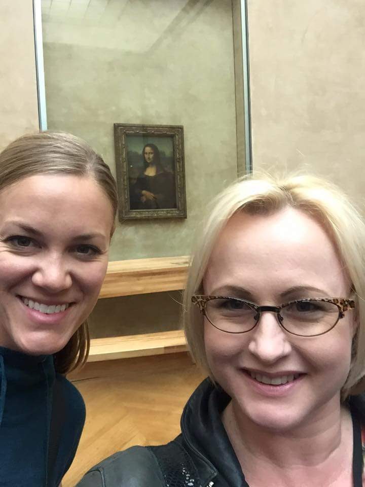 The following morning, we sat in a small cafe with a view of the beautiful church and had omelets, bread, coffee, and juice before our visit. Our bike tour guide had warned us of some of the tricks different people play to get money out of tourists: men from Africa wrapping strings around your wrists when you’re not looking and telling you that you have to pay for the bracelet and then asking, “Why you not happy?” or the groups of gypsy girls with pizza boxes getting your attention by saying they need your signature for a social cause while another girl snatches your phone or wallet from the other side. It’s all part of the traveling experience. Before we walked into the church, we overheard a man heatedly explaining “why he wasn’t happy.” The church was beautifully ornate inside – like so many old churches in Europe – and we decided to pay a few Euro to climb the 90 steps to the top of the tower to have a day-view of Paris. It was worth it. What we had missed the night before from the Eiffel Tower, we got from Sacre Coeur. We climbed back down after getting our fill (commenting on getting back in shape as we went) and ventured on to get some amazing street crepes (mine was chocolate and banana). Then went shoe shopping so I’d have something to wear with the dress Steph loaned me for the Moulin Rouge show that night. After having shoe succes, getting eye make-up done at Mac, and eating a snack at McDonald’s (what can I say, we got desperate), we took an Uber to our crazy dinner show where the tables were so close together, we could hardly get to our seat. We ate, attempted to chat with the two men from Uruguay next to us, and then watched as the craziness began. I hadn’t checked to see what kind of show it was. Steph had booked a single ticket through a travel agent, and we thought it would be fun to go together. Neither of us had any idea what to expect. Balancing acts, comedy acts, musical acts, a woman swimming with pythons, sequence, gems, feathers, lights, and yes, tastefully topless dancers (we were in France afterall), paraded across the stage for two hours performing. I watched amazed as a man with his feet strapped to the seat of a chair and knees bent over the top of the chair rested with his head against the floor while balancing his standing partner in his hands, arms straight above him. Then, he did the most amazing sit-up, still balancing her, and stood up in the seat of the chair himself. I had no words. There are things in life that I will only be able to appreciate and never be able to do. Buzzing from the show, we went for drinks to finish the night and made plans to visit the Louvre the following day, Steph’s last in Paris.