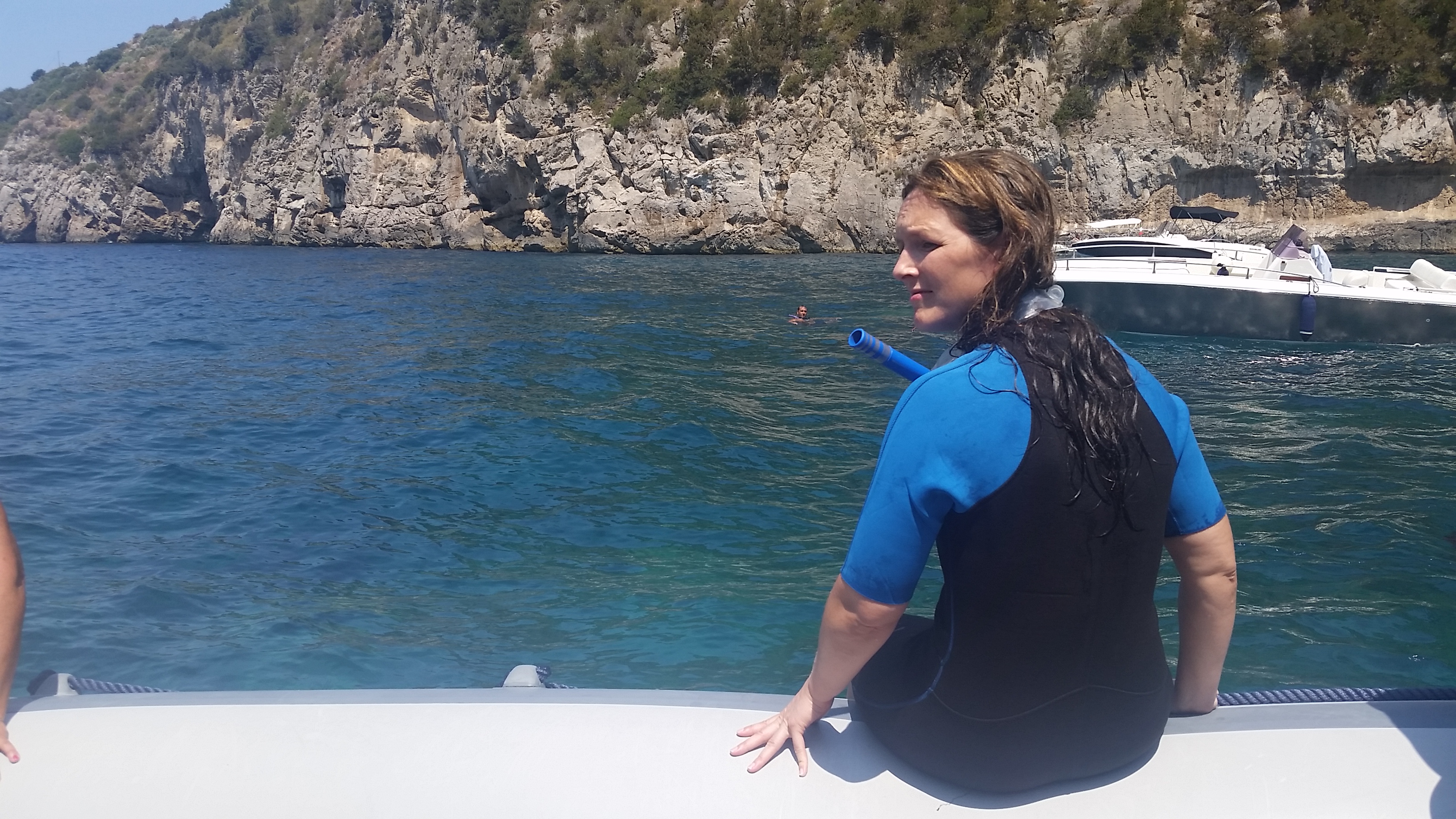Our first rafting day! We were finally going to face the rapids of the Zambezi. Before breakfast I enjoyed my own yoga practice on the deck of the pool overlooking a distant watering hole, active with animals. After joining Jody in the dining room to eat eggs benedict and bacon, I gathered what I would need for the next three days and stuffed it in my dry bag, hoping that the day we carried all of our gear on the rafts, the bag would live up to its name. We loaded a safari truck for a short drive to the entry point, and then proceeded down steep metal stairs and rock trail from the top of the gorge to the bottom all while wearing or carrying our life jackets, helmets, and paddles. The rafts waited for us in the water, and each person claimed a raft and a captain to ride with for the next three days.