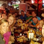 Jody and I along with Gaston, Saira, Jerad, and Kay (and sometimes David) along with our fearless river guide, Lorenzo, formed, what we would later call ourselves, Team Fireball (self-named for our awesomeness or because we had a bottle of Fireball in the raft thanks to Jerad and Saira). The 21 rapids we faced that day (and would redo the following day) had several class V rapids; most notable: rapid 5 (Stairway to Heaven), 9 (Commercial Suicide) which we portaged around, 12 and 13 combined (The 3 Ugly Sisters and The Mother), and rapid 18 (Oblivion). As we approached each rapid, Lorenzo told us the different routes we could take through the rapid and the one that he wanted to take. Sometimes he said, “I don’t know what will happen. We’ll see how Nyami Nyami feels. Just get down and hang on!” Nyami Nyami is a mythical snake/fish creature that personifies the characteristics of the river. When we started the trip, everyone was given a Nyami Nyami hand-carved from bone to remind us of the power of the river. Rapid 18 became our team’s challenge, and we approached it from the middle, the most difficult route, but with the biggest wave train. As we rafted through the middle, we hit the first wave and water splashed over us. We hit the second wave and more water came into the boat. We hit the third wave, and water anialited our boat. The river swept us all from the boat and into rapid 18…everyone except our guide, Lorenzo. I got caught swimming circles in an eddie, and Lorenzo threw me a rope to drag me in. We rescued the other members of Team Fireball as our boat continued down river. It was my first time to swim while rafting. We watched the other rafts attempts at the same route and saw almost everyone ejected from the rafts. Rapid 18 is the most famous on the Zambezi for flipping boats, and we were all on an amazing adrenaline rush after getting back in the rafts and continuing down river for the short trip to our camp. To see the carnage, check out this YouTube Video of Rapid 18.