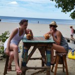 Yesterday we sat and watched the sun set from a rock outcropping surrounded by scattered pools of water. The pools resembled glass until a nervous crab or two jumped in to hide from our scary shadows. We sat on the sharp, black rocks watching the sun slowly submerge itself in the pool of the ocean until only dusk remained. Walking back to the house, we all took our empty glasses, once filled with Cacique Guaro and Coke, back to the beach in front of our rental. One of the guys built a beach bonfire and encircled it with driftwood benches while others worked at the house to try to make our own authentic version of gallo pinto (rice and beans). The fish cooked in foil packets buried in the coals of the fire, and we sat staring at the flames, mesmerized by their dance. When the food finished cooking, we brought everything out to the campfire: plates, cups, Cacique, gallo pinto, and fish. We sat on our driftwood benches eating fire-roasted fish and gallo pinto, listening to the waves crash against the shore and admiring the expanse of stars that hung overhead. I have never eaten a meal in such a setting.