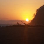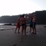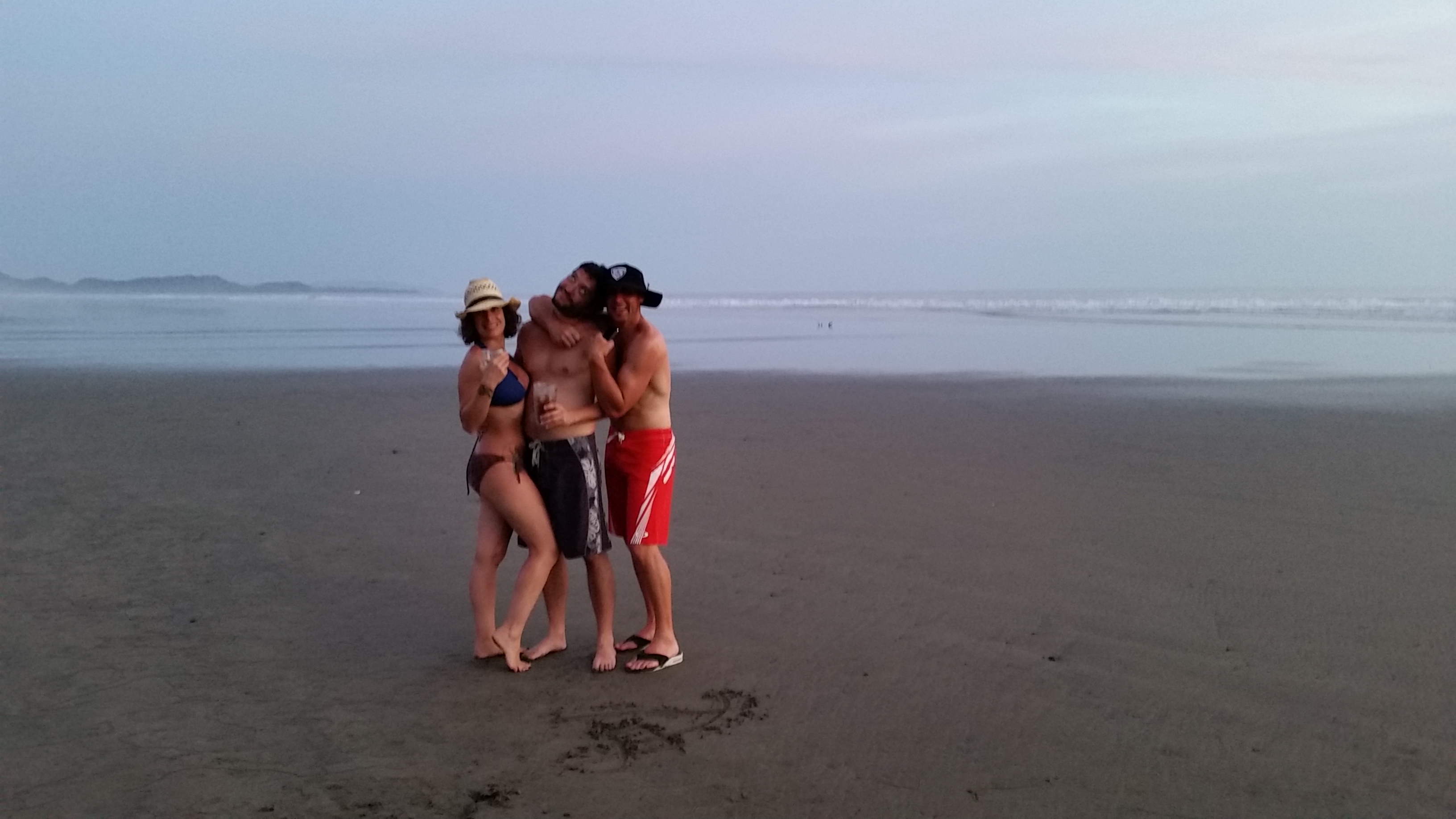 Yesterday we sat and watched the sun set from a rock outcropping surrounded by scattered pools of water. The pools resembled glass until a nervous crab or two jumped in to hide from our scary shadows. We sat on the sharp, black rocks watching the sun slowly submerge itself in the pool of the ocean until only dusk remained. Walking back to the house, we all took our empty glasses, once filled with Cacique Guaro and Coke, back to the beach in front of our rental. One of the guys built a beach bonfire and encircled it with driftwood benches while others worked at the house to try to make our own authentic version of gallo pinto (rice and beans). The fish cooked in foil packets buried in the coals of the fire, and we sat staring at the flames, mesmerized by their dance. When the food finished cooking, we brought everything out to the campfire: plates, cups, Cacique, gallo pinto, and fish. We sat on our driftwood benches eating fire-roasted fish and gallo pinto, listening to the waves crash against the shore and admiring the expanse of stars that hung overhead. I have never eaten a meal in such a setting.