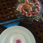 When we returned to Elephant camp, we got ready to share our last evening together as a group. Lorenzo’s amazing wife Terry, had not joined us on the rafting portion of the trip, and instead visited a friend in Capetown and in the process collected several South African wines to host a tasting for us before dinner. We enjoyed the wines, and then carried the leftovers to an outdoor dining area set with an exceptional feast. The singer/dancers greeted us again, and we celebrated birthdays for Diego and Saira with cake, kudu, pasta, potatoes, mopani worms and every other delicacy you can imagine.