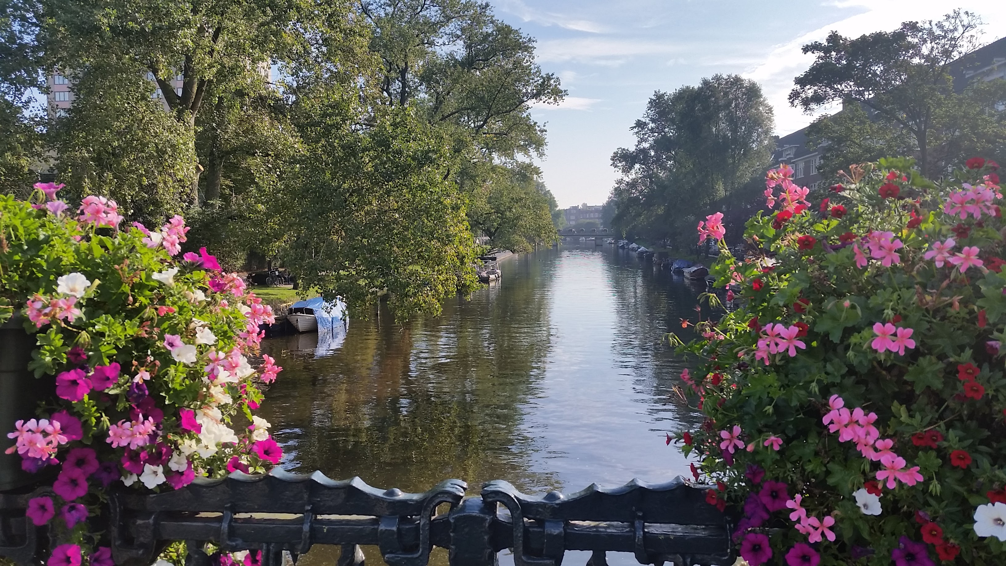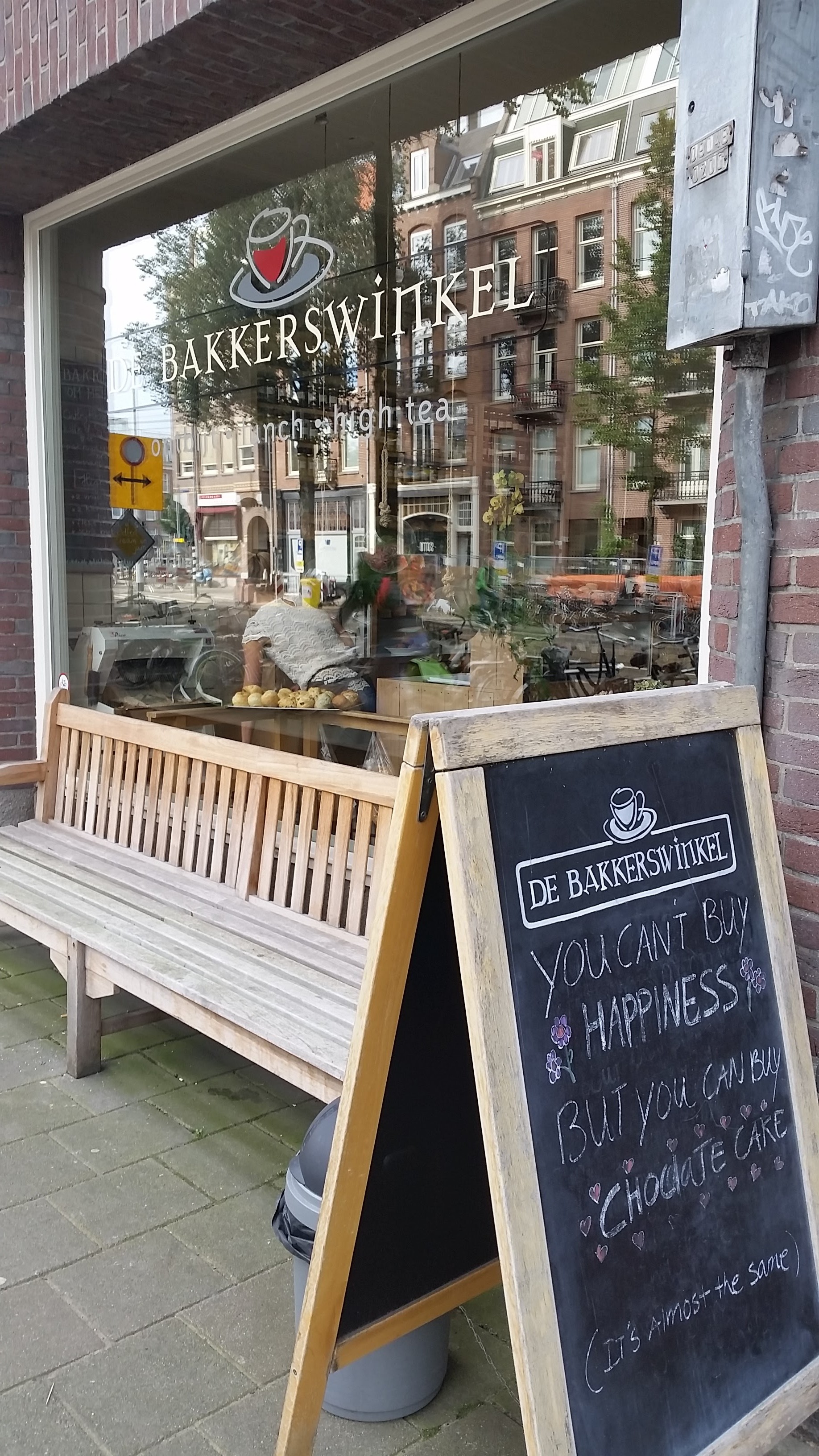 I took the train to Amsterdam from Paris. My bags were much smaller as I packed only for the weekend and left the rest of my stuff at Eli’s house. I decided to return to Paris after my weekend trip and stay with her and her family again because they were such great hosts. So, I landed at Hotel One to wait for Frieda to arrive from Germany. It was a great hotel if you’re looking for a place to stay in Europe. I watched the sunset from our corner room and then heard a knock at the door. It was so good to see my friend from yoga teacher training in Nicaragua last January! Because it was late, we decided immediately that we needed to get food. I had made reservations at a Dutch restaurant for 9pm. We started the walk and en route found a cute little Thai place to eat instead. Everything about this place was so unique and the details were absolutely amazing, down to the flower tea cups on leaf tea plates that matched all of our dishes and the friendliest, kindest waiter that spoke only a little English. It was called Chutima’s – it receives mediocre reviews for service, but we were in no hurry – we found it delightful. So we sat and chatted over dinner for a couple of hours and afterward walked back to the hotel and slept. We were both exhausted. On Saturday morning we took our time getting around, chatted about life, and found a great little cafe, De Bakkerswinkel, that served bruch. So, we started with a light breakfast of scones, clotted cream, and jam, and then moved right into lunch with soup and a sandwich. We also bought treats for our separate trips home that evening. Then we meandered the beautiful city. The city is clean and manicured and beautiful with the circling canals and bakeries and bicycles on every corner. We were a little disappointed that we indulged so much for brunch and didn’t leave room for all the amazing food we found as we walked. We went to a local grocery store because I talked so much about curry ketchup, and Frieda helped me find a tube of the yummy red sauce and a few other fun treats to take with me. Then we walked to a park and found a cute little restaurant in the middle where we drank mint tea on the second floor overlooking everything green and talked about our lives and maybe meeting up in Spain next year for a yoga retreat. As the sun lowered, we found our way back to the hotel, and had one last gin moscow mule together. Then our short reunion ended and our trains went separate ways.