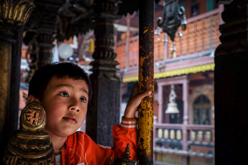 Joel and Tenzing took us to the Kathmandu Guest House to drop our bags, and then we ventured into the city for our first taste of Kathmandu chaos in Thamel. Tight streets, traffic, people, shops with wares hanging and setting outside, motorbikes, bicycles, lights, signs, smells, and sounds. The activity seemed ceaseless. We got a few groceries and went back to the hotel. Then, I crashed into a jet-lag induced sleep. The next morning we started our photography workshop over breakfast – learning about aperture priority, ISO, and shutter speed. We gathered our cameras and in the next two days went to several temples: The Golden Temple of Patan, Swayambhu Monkey Temple, Pashupatinath, and Boudanath. As we learned to make adjustments to our cameras for better pictures, we also learned about the culture of the area. The earthquake damage to some of the older buildings still remained in devastated crumbles. Sadhus, holy men, live in some of the damaged temples. Many are yogis that have removed themselves from normal society to pursue the highest form of liberation from the material world. They have a distinct dress with long dreadlocks and do not work. So, they get food from donations. People also donate money to the living goddesses, kumaris, who live at the temples. These living goddesses are young girls chosen to be goddesses based on very strict qualifications and their horoscope. Giving blessings and healing sickness, they are believed to be the embodiment of a female deity. They are only allowed to go outside for certain festivals, their feet cannot touch the ground, and they are tutored to receive their education. Hindus and Buddhists both believe that when the girls begin menstruating, the deity leaves their body. Their time as living goddess then ends, and they return to regular society. The society as a whole is an interesting mix of the Buddhist and Hindu religions. The cultures collide in a mixture of tradition with spinning prayer wheels, lighted prayer candles, and prayer flags all over the country. We captured and experienced a few of these unique scenes within the city of Kathmandu. It is a place I will never forget.